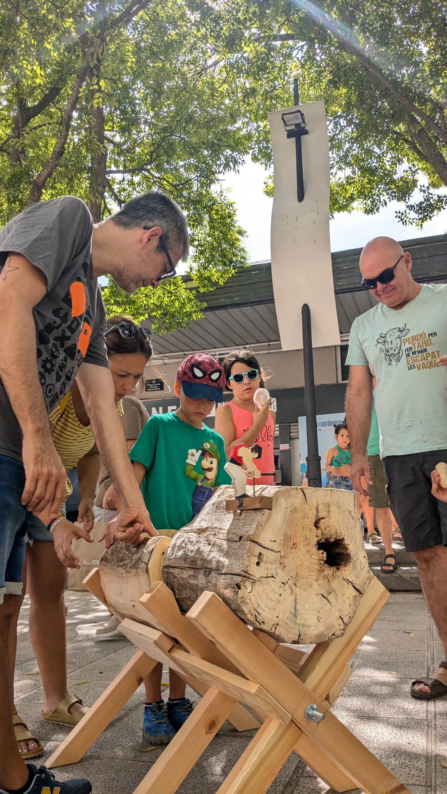 El joc proposat reprodueix aquesta tradició de manera lúdica. Els participants han de guiar una pilota a través d’un tronc utilitzant un sistema de balanceig, mentre un petit autòmat simula tallar la fusta amb una destral. Aquest mecanisme interactiu reflecteix l’esforç dels Aizkolari i ens connecta amb l’artesania i el simbolisme que representa el treball de la fusta.